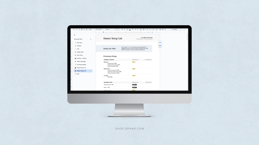 Templates and resources created by an experienced wedding planner to help you confidently navigate the world of wedding planning with more knowledge and understanding about the industry.